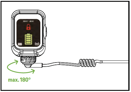 ⚠ Das Ring-Controllerkabel kann bis zu 180° gedreht werden. Drehe es niemals mit Gewalt weiter, sobald du einen Widerstand spürst, sonst können die inneren Kabel beschädigt werden und der Ring-Controller funktioniert nicht mehr einwandfrei.