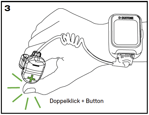 ℹ Hinweis: Wenn du ein größeres Handgelenk hast oder die Fernbedienung über einem Neoprenhandschuh trägst, kannst du das Armband durch das mitgelieferte XL-Armband ersetzen. Ist der Ring zu groß, tausche die Ringpolster gegen die dickeren Polster aus oder kombiniere ein dünnes mit einem dicken Polster für die ideale Passform.