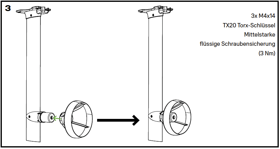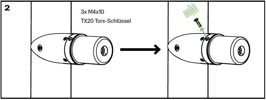 Setze den Guard auf den Motor, richte die Schraublöcher aus und ziehe die neuen, längeren Schrauben fest. Um zu verhindern, dass sich die Schrauben schneller lösen, kannst du auf sie mittelstarke Schraubensicherung machen.