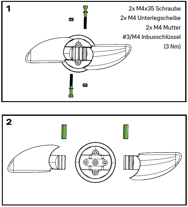 - 2x M4x35 Schrauben (3 Nm)