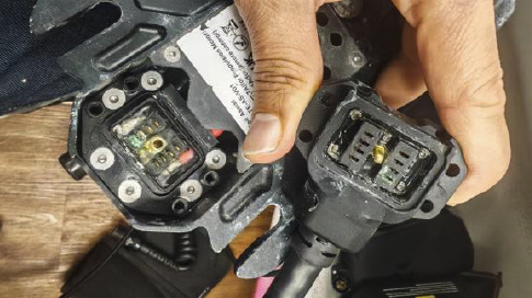 - Make sure the cable connector is securely locked onto the battery box connector. Inspect both the cable and the battery box connector for sand, debris, corrosion, or signs of water entry.