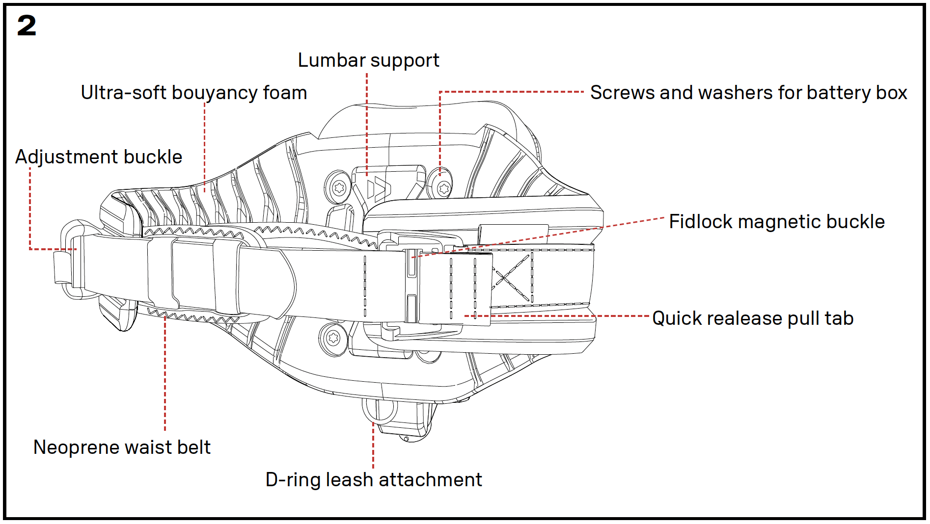 The Duotone Foil Assist consists of the eMast with motor, cable, and leash, the eHarness with battery box, and the Watch Ring Remote.