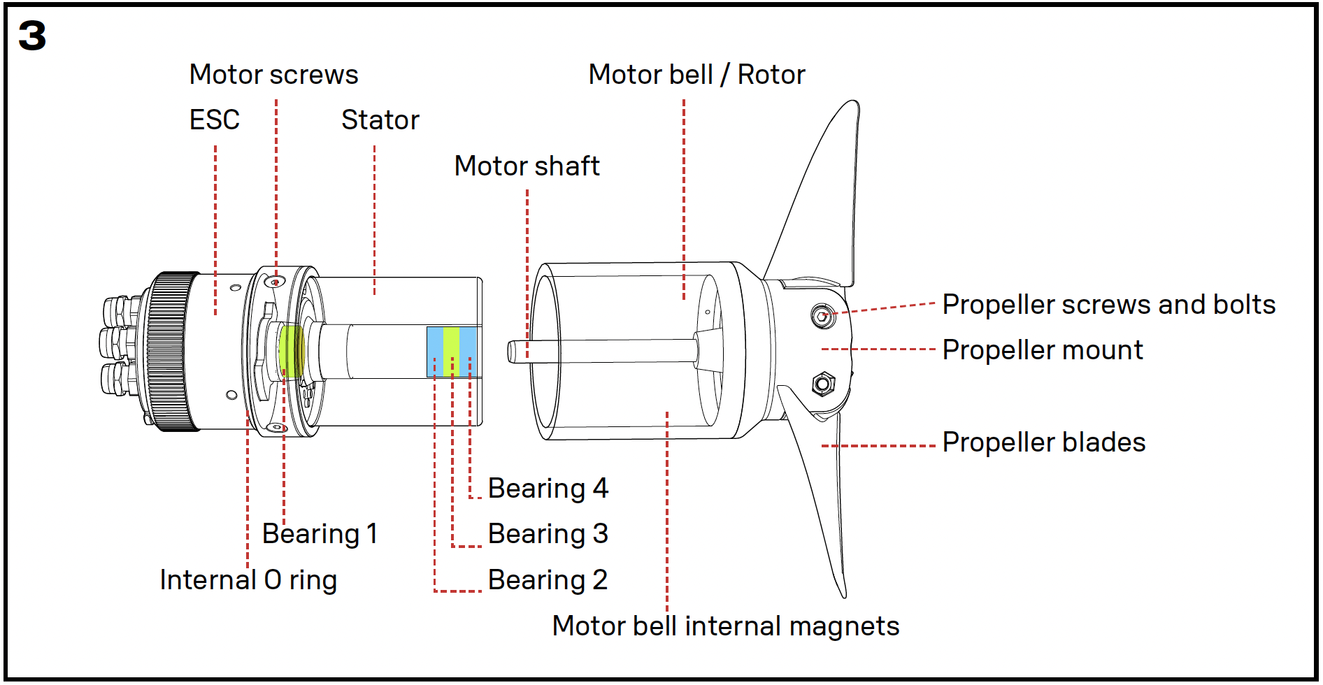 3 ESC, motor, bell & propeller