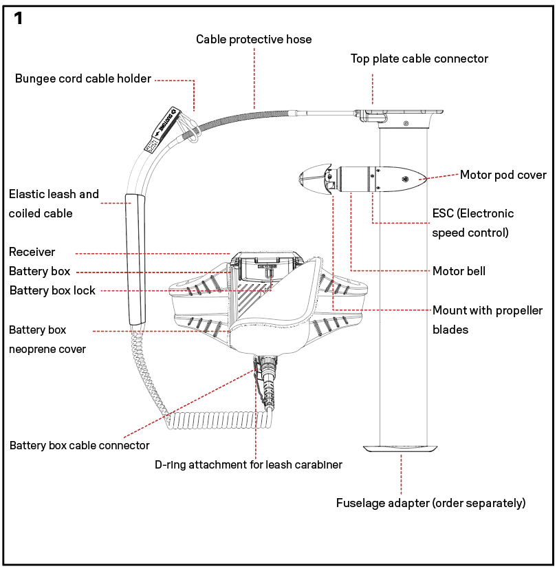 1 eHarness, cable, leash and eMast