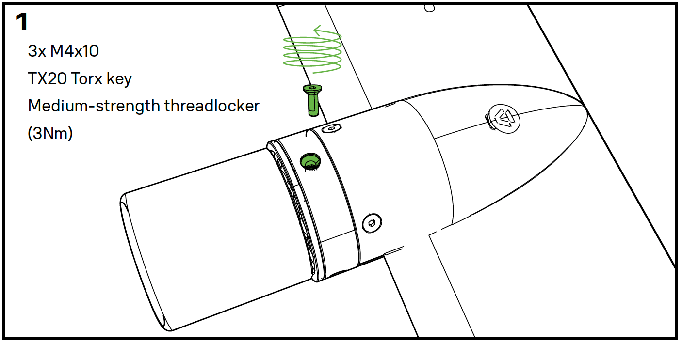 - Aplica bloqueador de rosca de resistencia media en los tornillos (Loctite Azul 243 o equivalente) para evitar que se aflojen durante el uso.