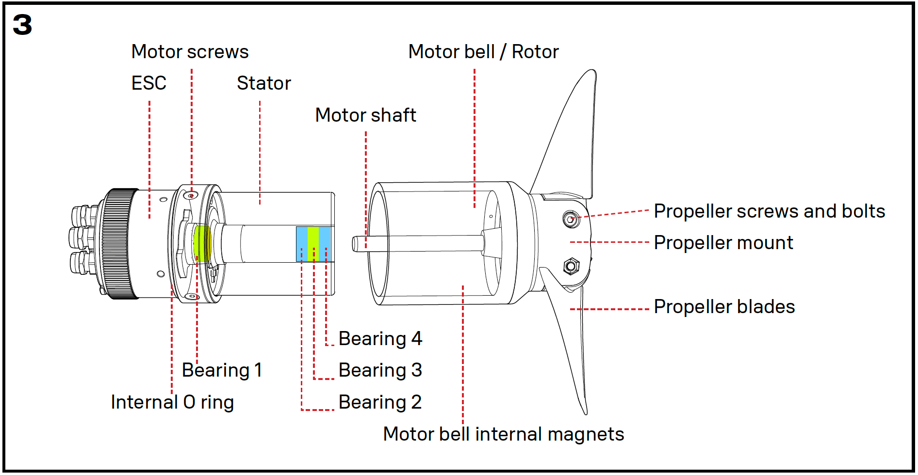 3 ESC, motor, timbre y hélice
