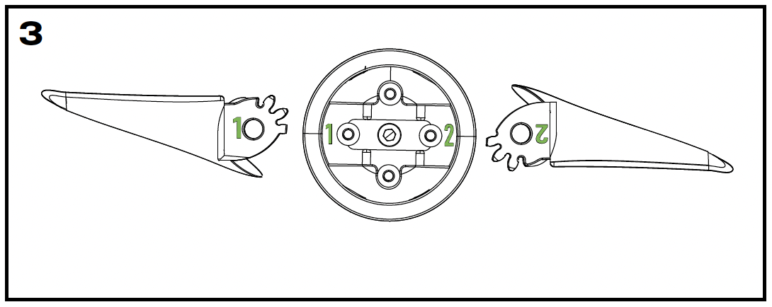 - Le pale sono contrassegnate con 1 e 2.