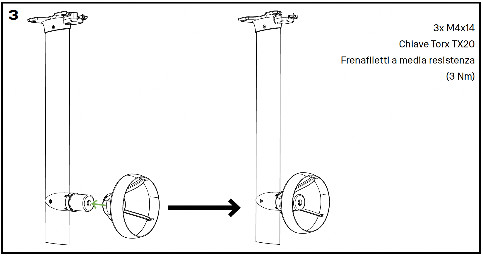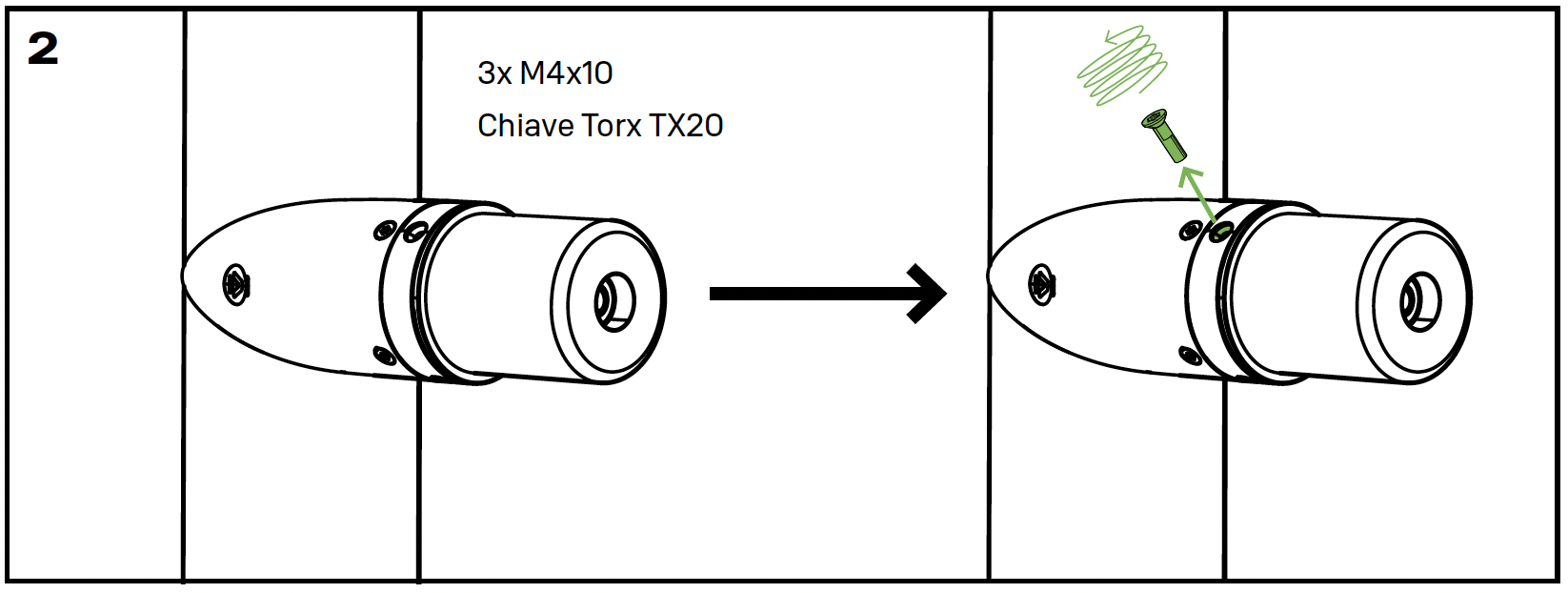 Posiziona il guard sul motore, allinea i fori delle viti e stringi le nuove viti più lunghe. Per evitare che le viti si allentino rapidamente, puoi applicare del frenafiletti a media resistenza.