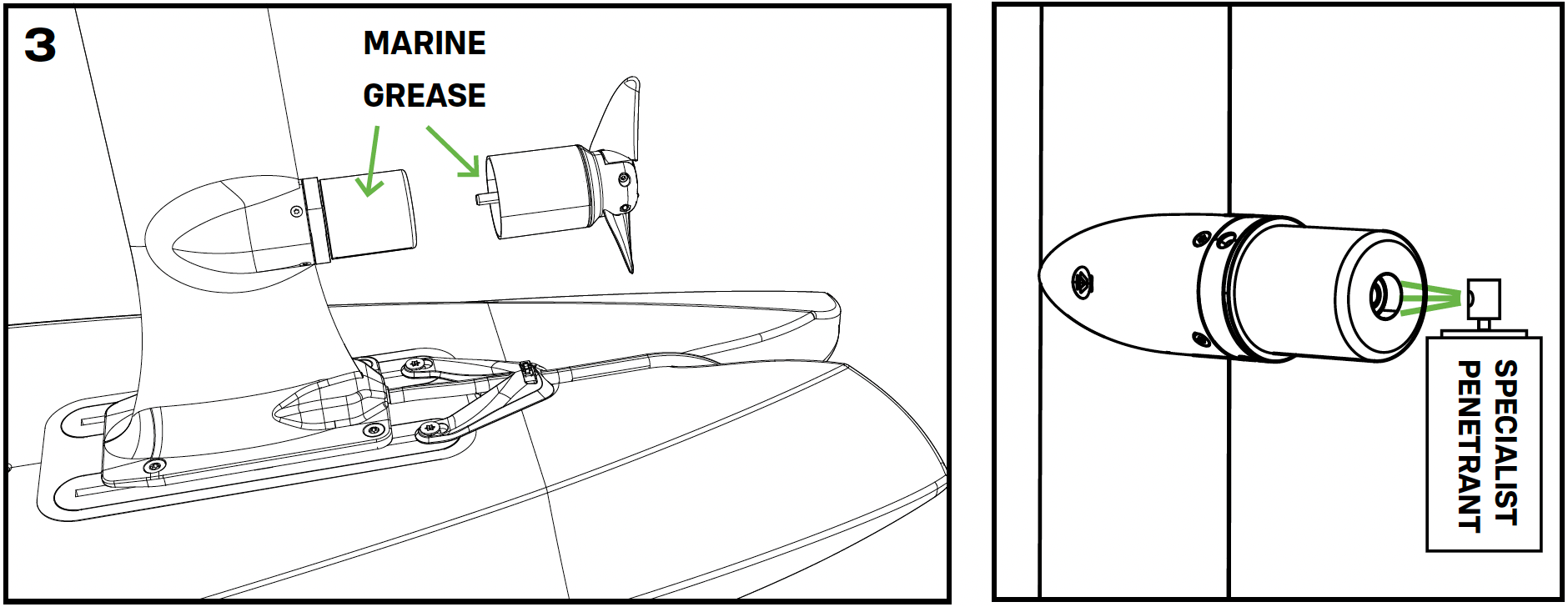 Una volta che tutto è asciutto, applica uno strato leggero di grasso marino 2‑4‑C allo statore. Poi posiziona la campana del motore sullo statore e ruotala per distribuire il grasso in modo uniforme. Spruzza i cuscinetti con WD‑40 Specialist Penetrant per prevenire la corrosione.