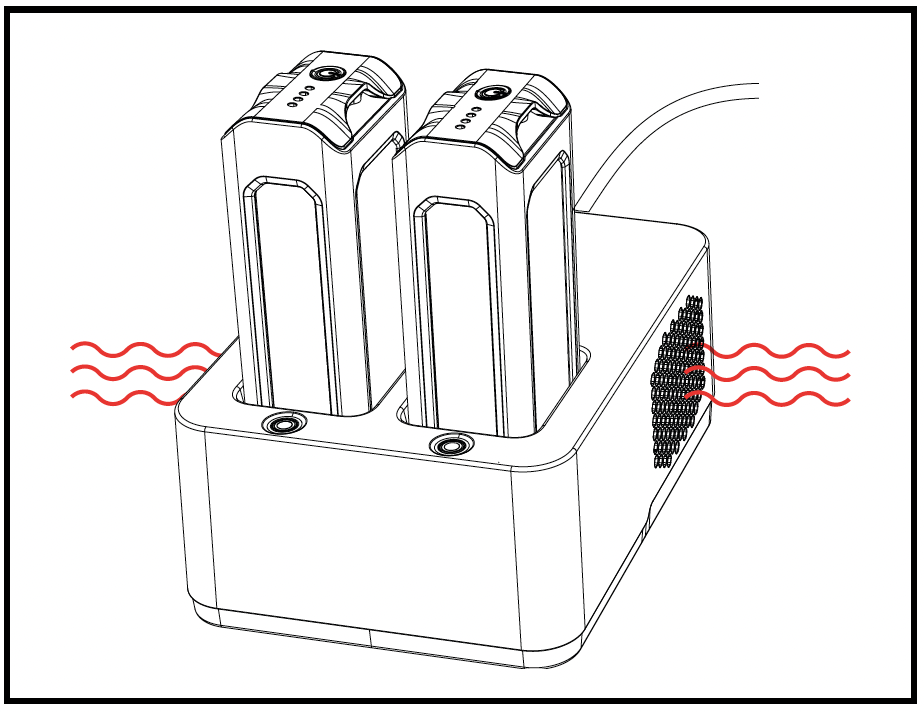 Svolgi sempre le operazioni di carica e scarica a casa, sotto supervisione, in un'area ben ventilata. Assicurati sempre che non ci siano ostruzioni vicino alle prese d’aria laterali del caricatore. L’aria in uscita può essere calda: mantieni oggetti e materiali a distanza di sicurezza dalle prese d’aria. Non lasciare mai il sistema collegato alla corrente quando non è in uso.