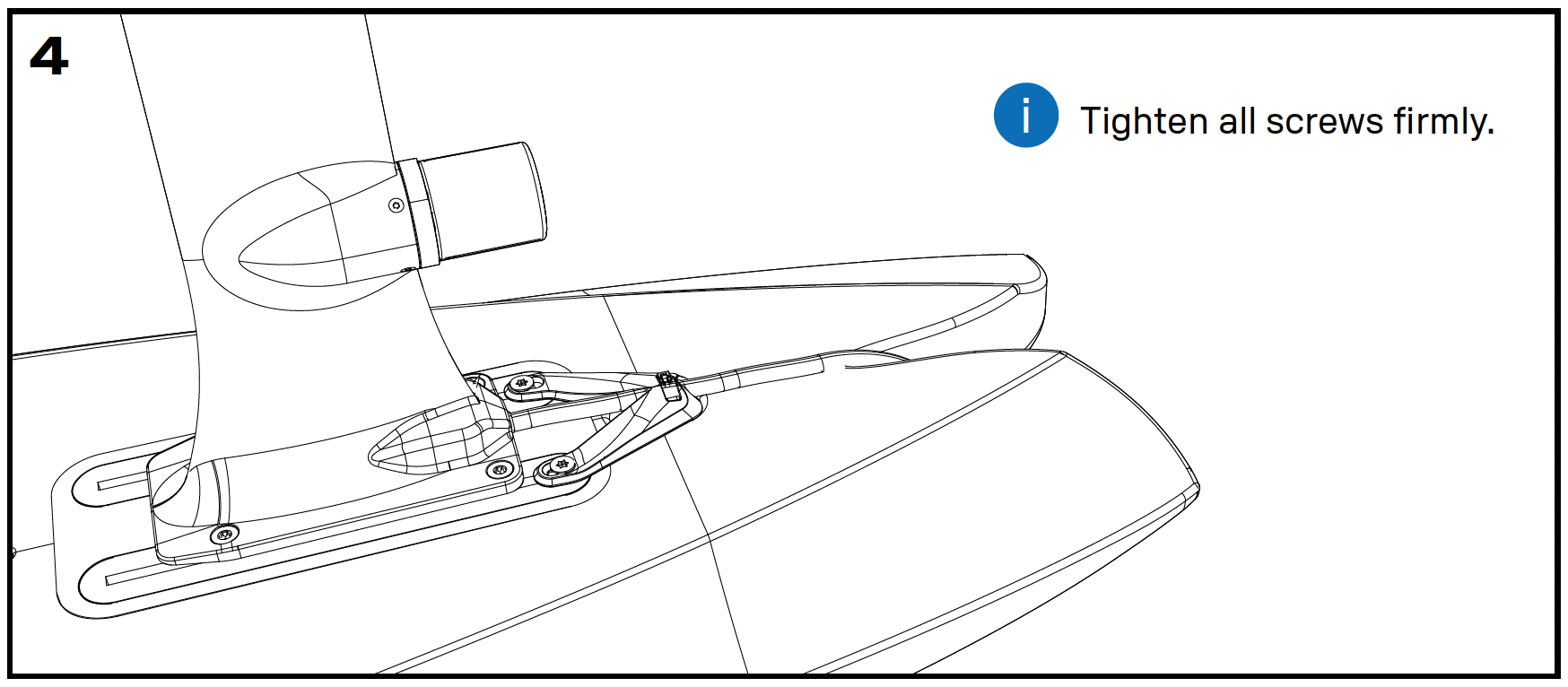 ⚠ Sempre verifique se os parafusos do motor estão apertados antes de cada sessão. As vibrações do motor e do foiling podem fazer com que os parafusos se soltem.